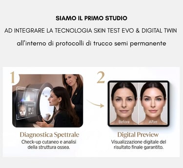 SIAMO IL PRIMO STUDIO AD INTEGRARE LA TECNOLOGIA SKIN TEST EVO & DIGITAL TWIN ALL'INTERNO DEI PROTOCOLLI DI TRUCCO SEMI PERMANENTE